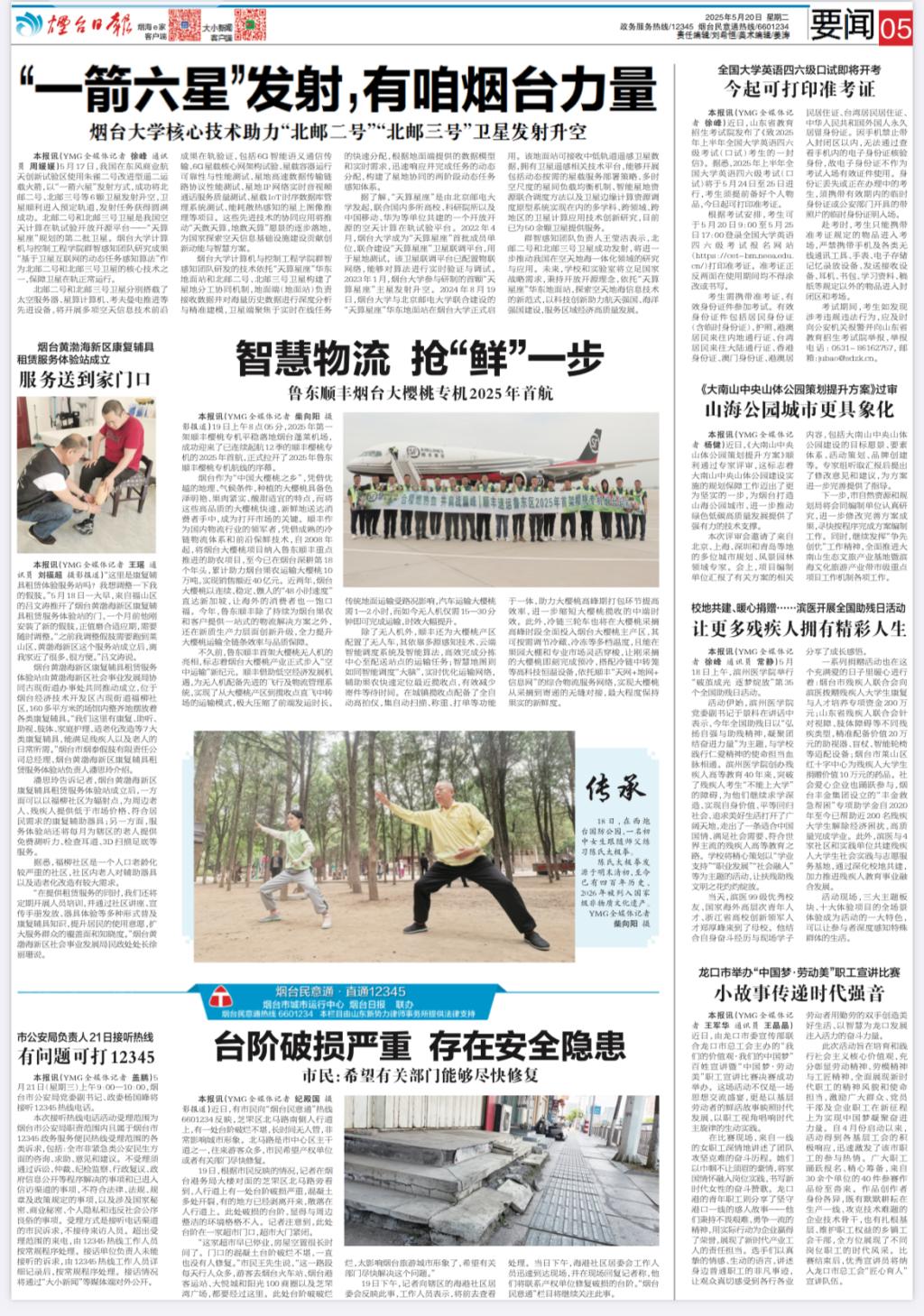 《煙臺(tái)日?qǐng)?bào)》5月20日要聞版刊登《煙臺(tái)大學(xué)核心技術(shù)助力“北郵二號(hào)”“北郵三號(hào)”衛(wèi)星發(fā)射升空》
