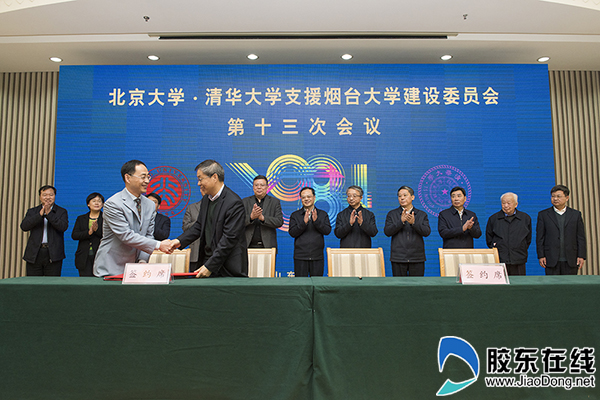 重溫崢嶸歲月,共襄發展盛舉。11月17日上午,北京大學、清華大學支援煙臺大學建設委員會第十三次會議在煙臺東山賓館召開。會議以“聚焦山東省新舊動能轉換重大工程建設,持續提升煙臺大學學科建設水平,推動校地校企深度融合,助力區域經濟社會發展”為主題。會議審議通過了建設委員會調整建議名單。北京大學、清華大學與煙臺大學的有關院系,簽訂了具有建設意義的系列合作協議和意向書。與會專家圍繞高水平大學建設進行了研討。