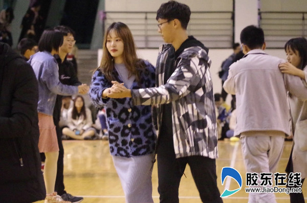 作為本場晚會C位出道的“交誼舞進行時”,在煙大專業(yè)教練現(xiàn)場演示和講解下,同學們躍躍欲試,紛紛上場尋找舞伴,翩翩起舞。