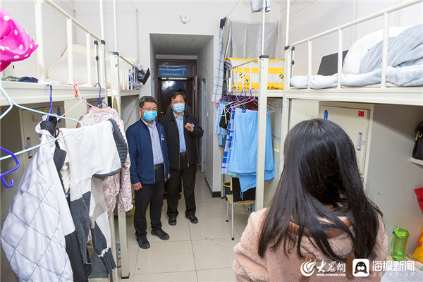 在學生公寓,校長郭善利詳細了解學生住宿安排、“愛心禮包”發放等具體情況,并勉勵學子努力克服疫情帶來的影響,盡快適應返校生活,注意個人衛生,做好學習規劃,讓學習生活早日步入正軌。