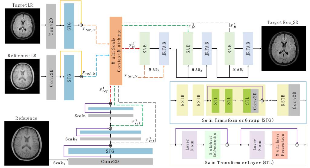 圖1.本文所提出的用于多對比度MRI超分辨率重建的網(wǎng)絡(luò)整體架構(gòu)。
