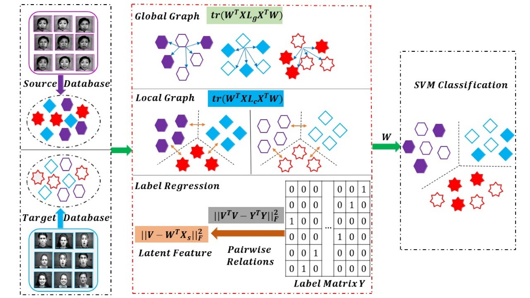該論文提出了一種聯(lián)合局部-全局判別子空間遷移學(xué)習(xí)方法來解決跨域人臉表情識別問題。具體地,該論文提出了一種聯(lián)合局部-全局圖作為距離度量,并提出了一種新的成對回歸函數(shù)來引導(dǎo)判別子空間遷移學(xué)習(xí)。然后,通過引入一個(gè)數(shù)據(jù)重構(gòu)約束來保留主要的判別信息。在多個(gè)公開人臉表情數(shù)據(jù)集上進(jìn)行了實(shí)驗(yàn)驗(yàn)證。實(shí)驗(yàn)結(jié)果表明,該論文提出的方法優(yōu)于目前大多數(shù)先進(jìn)的方法,驗(yàn)證了提出方法的有效性。