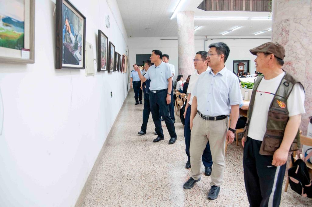 【本站訊】6月28日上午,“丹青頌偉業 光影傳百年”慶祝中國共產黨成立100周年教職工書畫攝影作品展在承先圖書館舉辦。學校領導張偉、段培永、張殿臣、孫祥斌、宋中民、周勝良、郝曙光、王強、李合亮、畢可志與學校辦公室、黨委組織部、黨委宣傳部、校工會等部門主要負責人及部分作者共同參觀展覽。