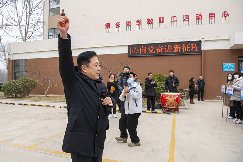 隨著發令槍響,伴隨著熱烈的鑼鼓聲,孫祥斌和馮素玲與女教職工們邁開輕快的步伐,沿著臨海路,欣賞著校園內蓬勃的新綠和綻放的春花,一路歡聲笑語,充分展現積極樂觀、健康向上的巾幗風采。
