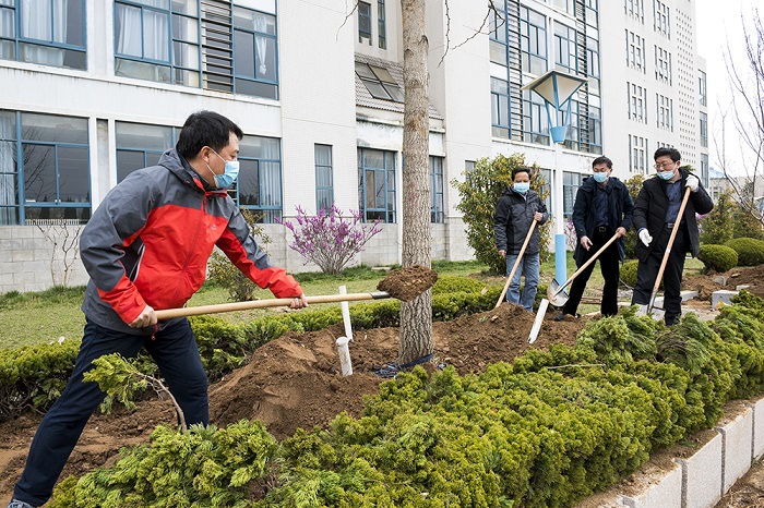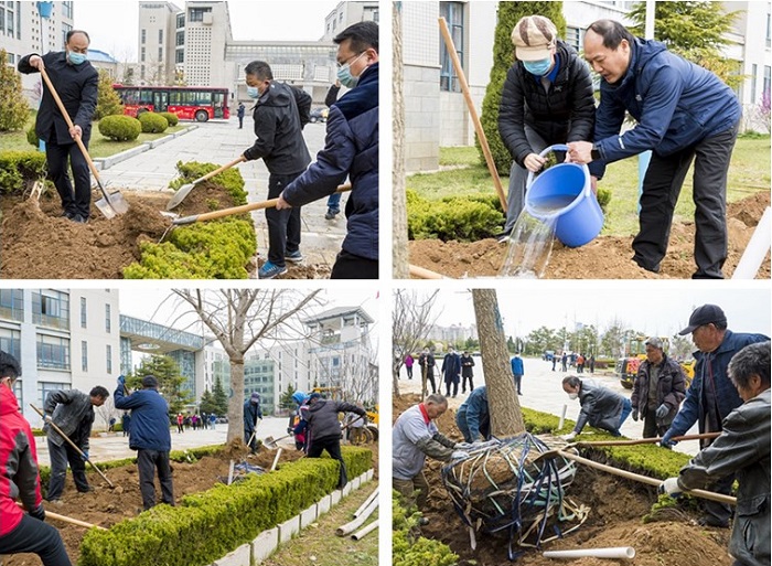 春風吹拂處,新綠綻枝頭。4月9日,學校在綜合樓、逸夫圖書館南廣場開展校園植樹活動。學校領導張偉、孫祥斌、鄧昌亮、宋中民、周勝良、郝曙光、王強與校機關干部、后勤管理處工作人員一起參加了植樹活動,以實際行動播撒綠意,傳遞希望。