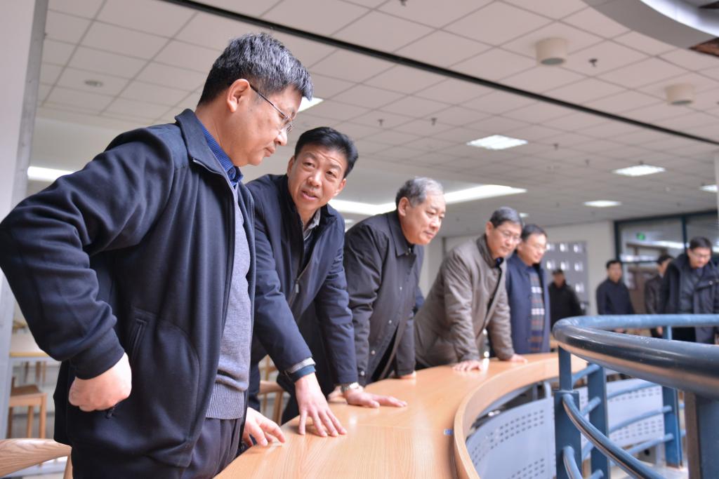 12月3日上午,煙臺大學黨委書記張偉、副校長宋中民到圖書館調(diào)研,學校辦公室、黨委宣傳部(黨委教師工作部)、黨委學工部(處)、教務處、人事處、財務處、資產(chǎn)與實驗室管理處、審計處、后勤管理處等部門負責人參加。大家實地察看了逸夫圖書館一樓大廳、轉(zhuǎn)角時光學習區(qū)、朗讀區(qū)、承先圖書館新建密集書庫、北大清華援建歷史文化墻、閱覽學習區(qū)以及智能化設備設施等情況。