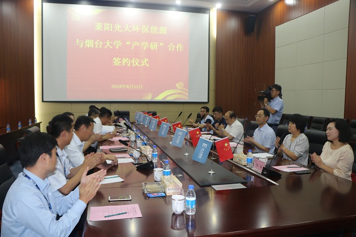 8月31日上午,煙臺(tái)大學(xué)土木工程學(xué)院與萊陽(yáng)光大環(huán)保能源有限公司產(chǎn)學(xué)研合作簽約儀式在萊陽(yáng)市舉行。黨委常委、副校長(zhǎng)郝曙光,萊陽(yáng)市委常委、常務(wù)副市長(zhǎng)王彥博,萊陽(yáng)市開(kāi)發(fā)區(qū)工委書(shū)記、管委主任郝華清,光大國(guó)際中國(guó)公司副總裁梁海東,萊陽(yáng)光大環(huán)保能源有限公司總經(jīng)理張言凱等出席,土木學(xué)院負(fù)責(zé)人及相關(guān)學(xué)科老師參加。