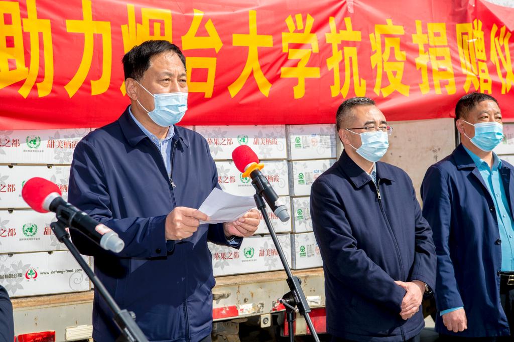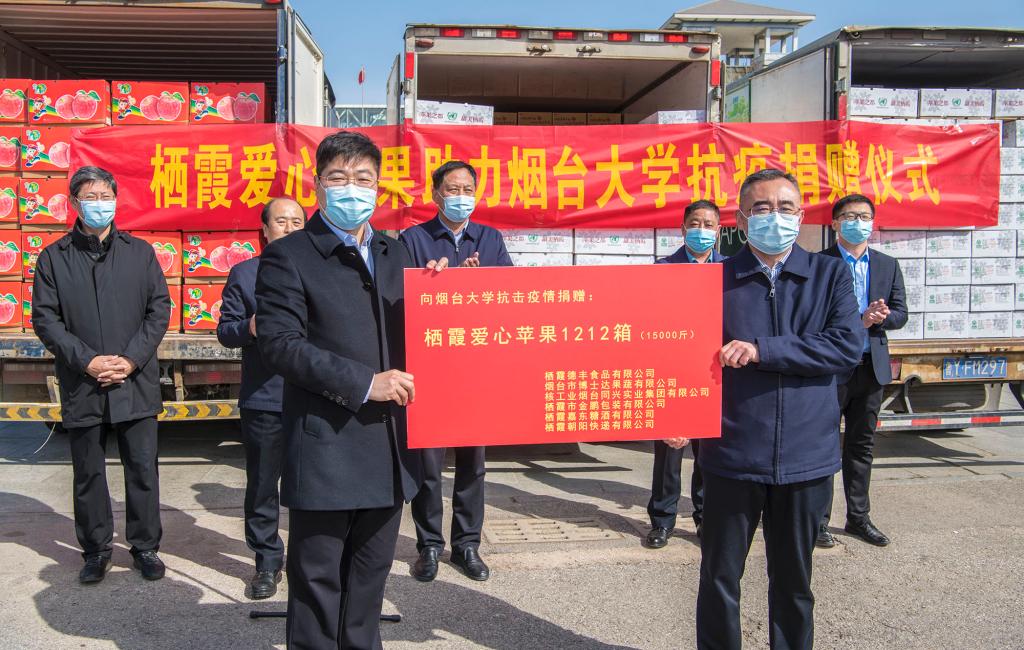 活動現場,棲霞市委常委、統戰部部長李克升代表棲霞市愛心企業將愛心蘋果交付給煙臺大學。煙臺大學黨委書記張殿臣代表學校全體師生,向棲霞市愛心企業和長期以來給予煙臺大學關心支持的棲霞市委市政府與社會各界人士表達衷心感謝,表示此次飽含愛心的棲霞蘋果,不僅讓學校感受到了棲霞人民的熱情和溫暖,而且更加堅定了抗疫必勝的信心,堅信在山東省委省政府、煙臺市委市政府的正確領導下,一定能早日戰勝疫情。