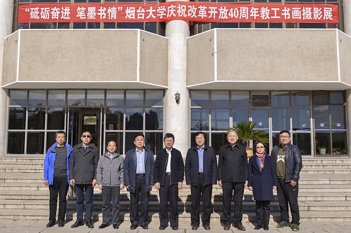 丹青溢彩,翰墨飄香。10月31日上午,校領導張偉、郭善利、孫祥斌、宋中民到承先圖書館參觀指導“砥礪奮進、筆墨書情——煙臺大學慶祝改革開放40周年教工書畫攝影展”。學校辦公室、黨委組織部、黨委宣傳部、紀委機關、校工會、校團委和圖書館等有關部門單位負責同志一同參觀。