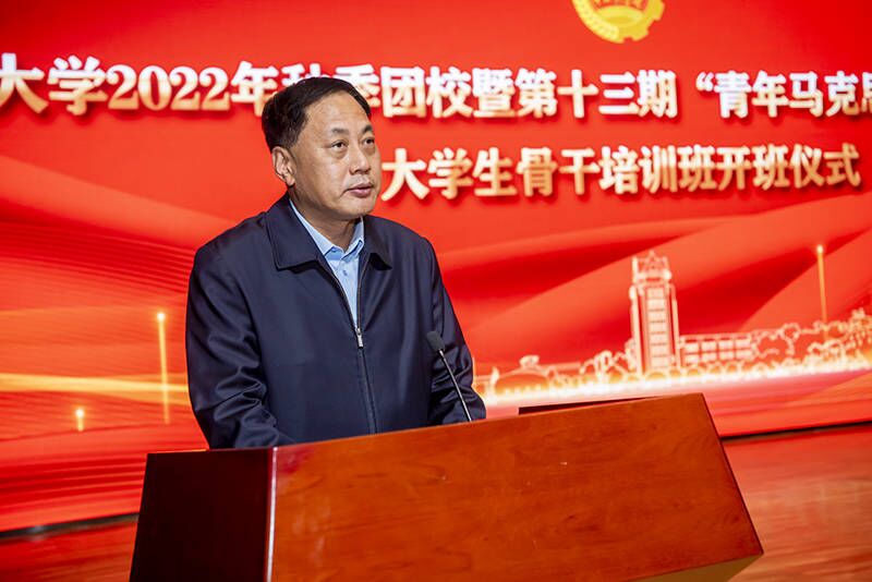 【本站訊】為深入學習貫徹黨的二十大精神,學習領悟習近平總書記關于青年工作的重要思想,培養造就一批政治強、素質高的青年馬克思主義者,10月19日下午,煙臺大學2022年秋季團校暨第十三期“青年馬克思主義者培養工程”大學生骨干培訓班開班儀式在弘毅廳舉行。黨委書記張殿臣,黨委常委、副校長畢可志,黨委常委、組織部部長王澤光,各學院分管學生工作領導、團委負責人以及培訓班學員參加了開班儀式。儀式由團委書記劉超主持。