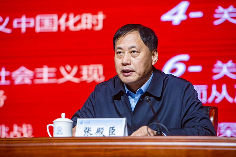 張殿臣緊扣黨的二十大主旨內涵與重要意義,圍繞黨的二十大的主題、主要成果,過去5年的工作和新時代10年的偉大變革,馬克思主義中國化時代化,中國式現代化,全面建設社會主義現代化國家的目標任務,堅持黨的全面領導和全面從嚴治黨,應對風險挑戰,持續推進學校高質量發展等八個方面對黨的二十大精神作了系統解讀,并結合實際對深入學習宣傳貫徹黨的二十大精神、不斷開創學校高質量發展新局面進行了部署、明確了方向。
