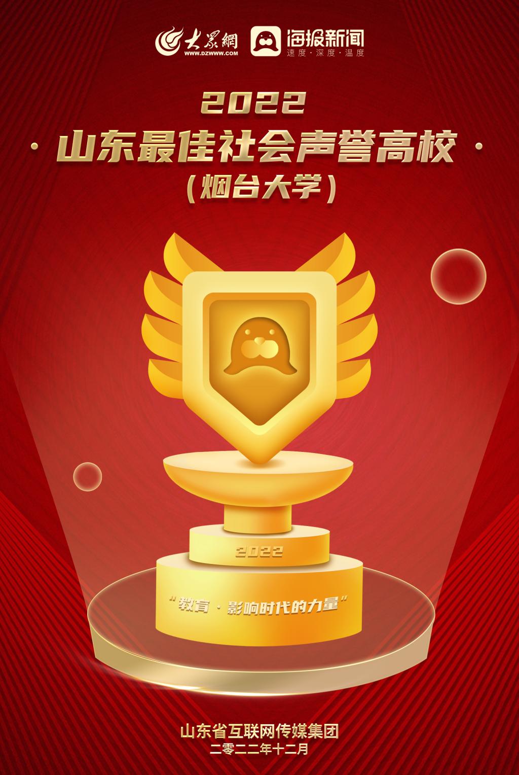 【本站訊】近日,由山東省互聯(lián)網(wǎng)傳媒集團大眾網(wǎng)·海報新聞發(fā)起的“教育·影響時代的力量”年度評選結(jié)果出爐,并向社會公開發(fā)布相關(guān)榜單。其中,煙臺大學(xué)入選2022山東最佳社會聲譽高校和最具影響力教育政務(wù)融媒體榜單,這是2018年以來學(xué)校第五次入圍雙榜。