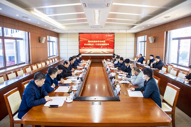 張殿臣代表學校對孫永一行來訪表示熱烈歡迎,介紹了近年來煙臺大學不斷深化校地融合、產教融合、科教融合的辦學特色,以及教育、科技、人才全方位支撐區(qū)域經濟社會發(fā)展所取得的成效,表示希望能夠與東營市進一步加強合作,互學互鑒、攜手共進,不斷推進雙方內涵式高質量發(fā)展。孫永對煙臺大學近年來高質量發(fā)展所取得的成果給予充分肯定,表示東營市正瞄準國家重大戰(zhàn)略需求和未來產業(yè)發(fā)展制高點,新能源、新材料、生物醫(yī)藥等戰(zhàn)略性新興產業(yè)快速成長壯大,與煙臺大學在新興產業(yè)領域合作交流廣泛、合作前景廣闊,希望雙方能加強交流,開展多領域多層次的合作,為區(qū)域經濟社會發(fā)展和社會主義現(xiàn)代化強省建設,作出新的更大貢獻。