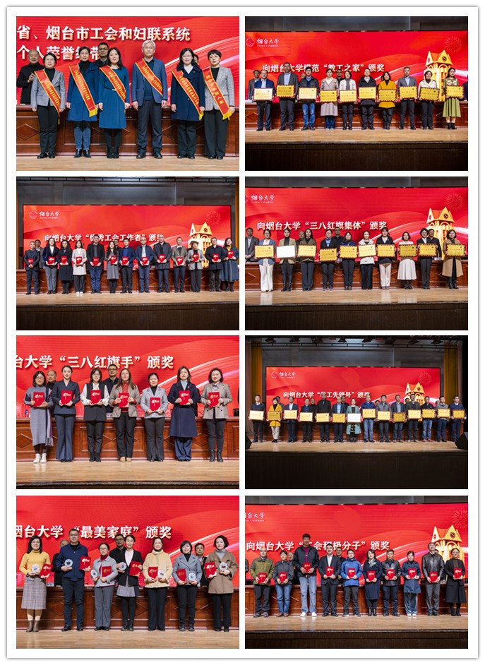 大會在莊嚴的國歌聲中開幕。會議對2022年度“全省教育系統模范職工小家”“山東省教育系統勞模和優秀人才創新工作室”“齊魯巾幗科技創新之星”“山東省教育系統女職工建功立業標兵崗”“山東省教育系統女職工建功立業標兵”,煙臺大學“模范教工之家”“優秀工會工作者”“三八紅旗集體”“三八紅旗手”“教工先鋒號”“最美家庭”“工會積極分子”等獲獎集體和個人進行表彰。模范“教工之家”代表王虔祖、“三八紅旗手”代表張勁、“教工先鋒號”代表田京偉、“最美家庭”代表張玉琴分別發言。