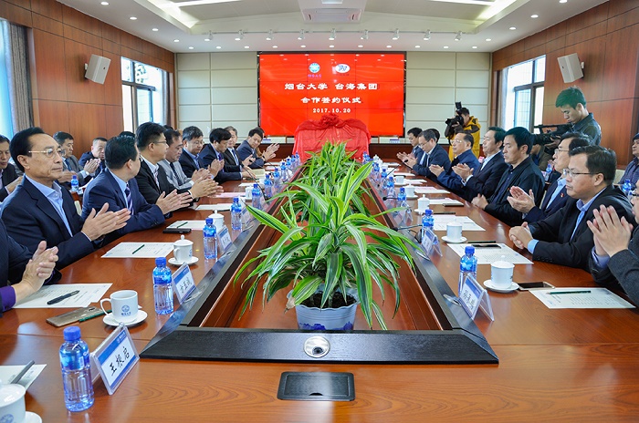 10月20日上午,煙臺(tái)大學(xué)與煙臺(tái)市臺(tái)海集團(tuán)有限公司簽約儀式在煙臺(tái)大學(xué)育秀大樓316會(huì)議室舉行。煙臺(tái)市副市長金志海、市政府副秘書長包信勇、市教育局局長徐建敏、市科技局局長李勇軍、萊山區(qū)區(qū)長孫玉榮、萊山區(qū)副區(qū)長蘇健、萊山區(qū)教體局局長宋吉偉、萊山區(qū)科技局局長孫承鵬、萊山區(qū)商務(wù)局局長張志堅(jiān),煙臺(tái)市臺(tái)海集團(tuán)有限公司董事長王雪欣、副董事長宋向陽、總裁趙博鴻、副總裁郝廣政、方玉誠,煙臺(tái)大學(xué)黨委書記張偉、校長郭善利、副校長宋中民、紀(jì)委書記周勝良出席儀式,儀式由副校長宋中民主持。煙臺(tái)市臺(tái)海集團(tuán)有限公司以及煙臺(tái)大學(xué)相關(guān)部門負(fù)責(zé)人參加儀式。