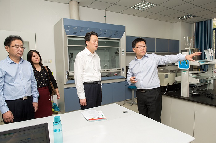 訪問期間,何慧星一行參觀了學校校史展館、千米文化長廊,實地考察了“分子藥理和藥物評價”教育部重點實驗室。