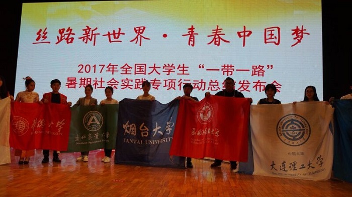 2017年暑期,共青團(tuán)中央學(xué)校部會(huì)同中國大學(xué)生“一帶一路”協(xié)同發(fā)展行動(dòng)中心開展2017年“絲路新世界·青春中國夢”全國大學(xué)生暑期社會(huì)實(shí)踐專項(xiàng)行動(dòng),我校共組建30余支團(tuán)隊(duì)參與專項(xiàng)實(shí)踐活動(dòng),深入開展了中國形象、絲路新貿(mào)、“一帶一路”高校特色等六方面專項(xiàng)實(shí)踐。其中,煙臺大學(xué)訪京韻覓“京”彩實(shí)踐團(tuán)、煙臺大學(xué)“情棲寧夏,心泊回鄉(xiāng)”暑期社會(huì)實(shí)踐隊(duì)實(shí)踐效果顯著,獲評“絲路新世界·青春中國夢”2017年全國大學(xué)生“一帶一路”暑期社會(huì)實(shí)踐專項(xiàng)行動(dòng)優(yōu)秀團(tuán)隊(duì),劉金保、商秋晨兩名同學(xué)榮獲專項(xiàng)行動(dòng)優(yōu)秀個(gè)人。