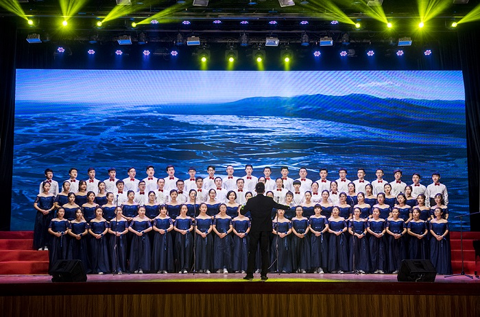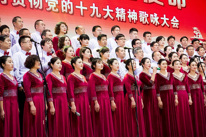 《旗幟頌》《在希望的田野上》《我們走在大路上》《走向復興》《共筑中國夢》《我們從古田再出發》等曲目熱情謳歌了黨的光輝歷程和偉大成就。“站在新起點,長征路更長,我的歌聲伴隨你傳遞八方。你用關注民生實現著幸福小康,你用百花齊放給生活添置彩妝,你用和平友誼送白鴿飛遍寰宇,你用民族復興領我們再創輝煌?!币皇资捉浀涞母枨w現了我校全體師生深入學習宣傳貫徹黨的十九大精神的濃厚氛圍,進一步激勵了各級黨組織和廣大師生堅定理想信念,牢記使命擔當,以實際行動為實現中華民族偉大復興的“中國夢”而努力奮斗。