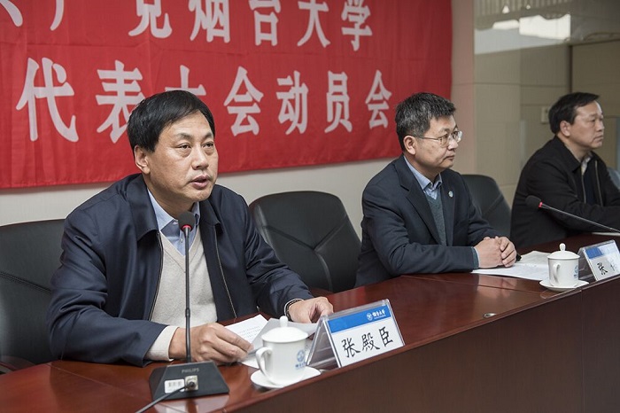 3月14日下午,學校在綜合樓六樓中廳召開煙臺大學第四次黨代會動員會議,黨委副書記、校長郭善利宣讀煙臺市委組織部關于煙臺大學召開第四次黨代會的批復,黨委書記張偉通報第四次黨代會籌備工作情況并作動員講話。黨委副書記張殿臣主持會議,選舉單位黨組織負責人、黨員正處級干部參加了會議。