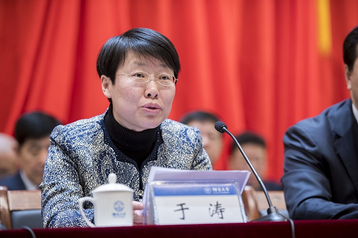 于濤代表中共煙臺(tái)市委向大會(huì)的勝利召開(kāi)表示熱烈的祝賀。于濤指出,煙臺(tái)大學(xué)是煙臺(tái)人民集資、北京大學(xué)和清華大學(xué)共同援建的高校,是煙臺(tái)的亮麗名片。近年來(lái),在省委省政府的正確領(lǐng)導(dǎo)下,煙臺(tái)大學(xué)黨委團(tuán)結(jié)帶領(lǐng)全校師生員工,加壓奮進(jìn),開(kāi)拓創(chuàng)新,為山東省特別是煙臺(tái)市的經(jīng)濟(jì)社會(huì)發(fā)展做出了重要貢獻(xiàn)。尤其是近兩年,煙臺(tái)大學(xué)以服務(wù)煙臺(tái)為己任,以積極的姿態(tài)融入到煙臺(tái)經(jīng)濟(jì)社會(huì)發(fā)展的大潮之中,不僅為煙臺(tái)市培養(yǎng)輸送了大批優(yōu)秀人才,同時(shí)充分發(fā)揮綜合性大學(xué)優(yōu)勢(shì),積極為市委市政府科學(xué)決策獻(xiàn)計(jì)獻(xiàn)策,積極參與校所城產(chǎn)融合。關(guān)于下步工作,于濤建議:不斷加強(qiáng)黨委班子自身建設(shè),充分發(fā)揮黨委領(lǐng)導(dǎo)核心作用;著力提升黨的政治建設(shè)和思想建設(shè)水平,凝心聚力,推動(dòng)學(xué)校各項(xiàng)事業(yè)又好又快、更好更快發(fā)展;按照“立足煙臺(tái)、融入煙臺(tái)、服務(wù)煙臺(tái)”的思路,助力煙臺(tái)市創(chuàng)新、持續(xù)、領(lǐng)先發(fā)展。煙臺(tái)市委市政府將一如既往地支持煙臺(tái)大學(xué)的建設(shè)和發(fā)展,為學(xué)校建設(shè)發(fā)展提供更加有利的條件,創(chuàng)造更加良好的環(huán)境。