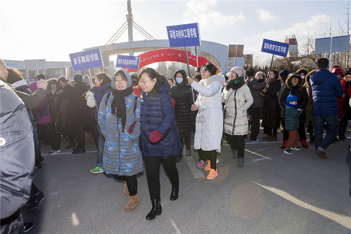 3月8日下午四點,由校工會、婦委會主辦的“巾幗心向黨·建功新時代”煙臺大學2018年慶祝“三八”婦女節健身長跑活動在學校東門舉行。黨委常委、副校長孫祥斌來到活動現場,代表學校向為學校發展做出貢獻的女教工表示節日的祝福和衷心的感謝。全校1500余名女教工參加了此次健身長跑活動,用運動的方式慶祝屬于自己的節日。