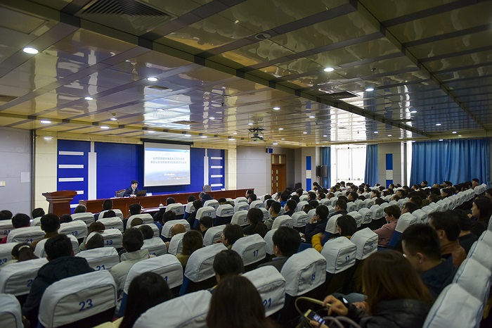 胡薄從世界科技發展趨勢和我國當前改革發展態勢兩個方面,立足山東省經濟社會發展的現實情況,圍繞“為什么是山東扛起動能轉換的大旗”“為什么是十大產業支撐山東動能轉換”“為什么是創新、改革和開放引領動能轉換”三個問題,對新舊動能轉換重大工程的時代背景、內涵實質和基本路徑作了系統剖析和深入解讀。報告主題鮮明、內涵豐富、闡釋深刻,為學校下一步深刻理解和把握新舊動能轉換的核心要義,服務新舊動能轉換重大工程提供了重要指導。