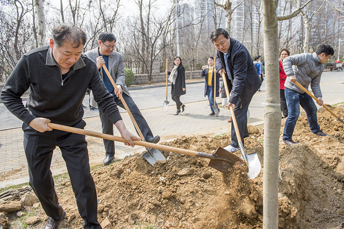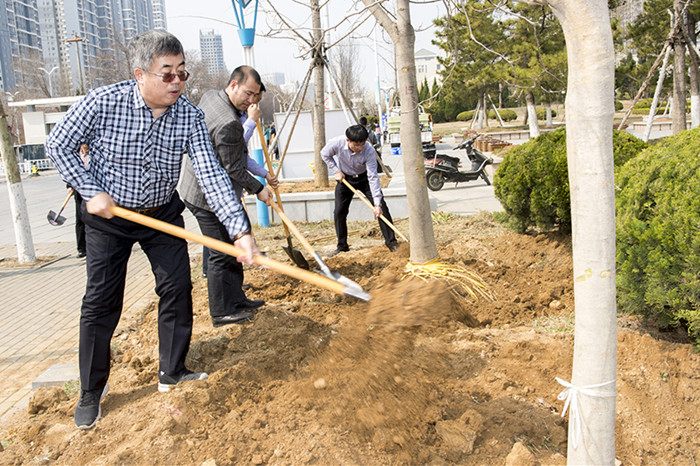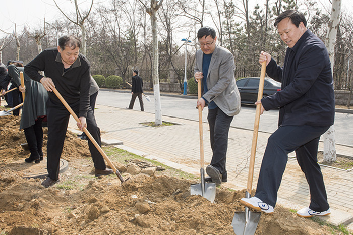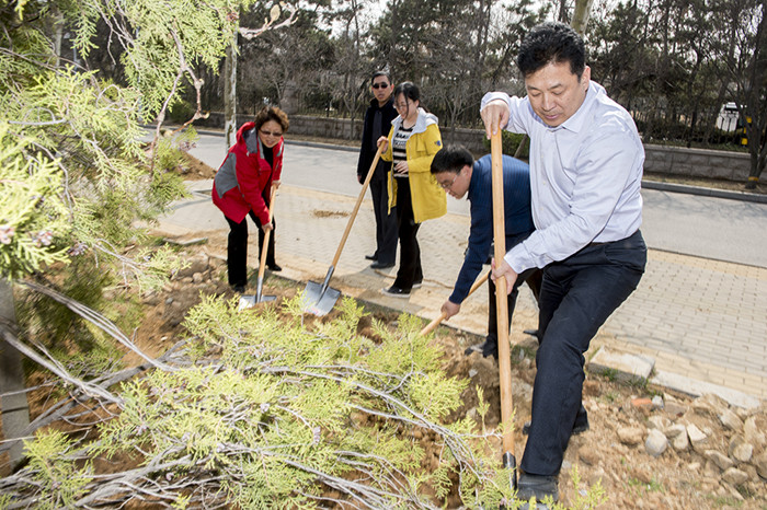 陽春三月芳草綠,又是一年植樹時。3月26日上午,學校在學海路北側開展植樹活動。校領導郭善利、孫祥斌、鄧昌亮、宋中民、郝曙光、王強與校機關工作人員一起參加了植樹活動。