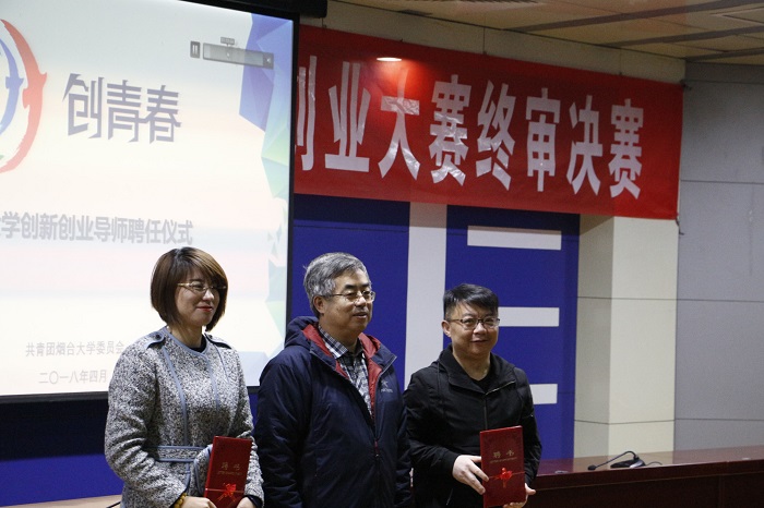 4月7日,煙臺大學2018年“創青春”全國大學生創業大賽終審決賽在逸夫廳舉行。副校長鄧昌亮在項目展示現場與決賽團隊親切交流,聽取了項目介紹并予以指導。為進一步充實我校創新創業師資隊伍,指導學生創業團隊更好地參加創新創業賽事,校團委選聘了相關企業管理人員和行業專家學者擔任我校創新創業導師。本次大賽特邀浙江水滴股權投資基金管理有限公司執行董事、國家教育部及山東省教育廳創新創業教育專家庫成員聶穎超,新華網創客大學創始人、1861文化創意產業園人力資源部主任朱少靜兩位校外專家,與我校經濟管理學院副教授李秦陽共同擔任決賽評審。活動現場,鄧昌亮副校長為聶穎超、朱少靜頒發了“煙臺大學創新創業導師”聘書。決賽答辯環節,各參賽團隊以PPT展示的形式圍繞創業項目商業模式、市場定位、財務管理、營銷策略等進行展示,專家評委通過問辯,對進一步提升項目質量水平提出意見和建議。