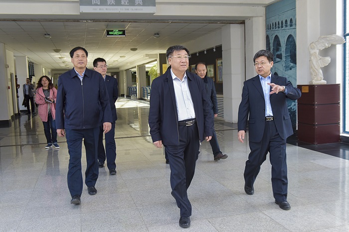徐少寧一行首先來到校史館,聽取黨委書記張偉對學校發展情況介紹。煙臺大學伴隨改革開放誕生,時任國務院副總理的萬里同志提出:“可以搞一個不要‘鐵飯碗’的大學,就叫煙臺大學。”在北大、清華的援建下,煙臺大學從建設到招生僅僅用了一年時間,徐少寧對“煙大速度”頻頻點頭,對起點高、發展快、勢頭好的煙大表示贊賞,對煙大為煙臺發展做出的貢獻表示感謝。隨后,徐少寧一行來到千米文化長廊,看到長廊全景式地再現了中西藝術的發展歷程,引領師生在藝術畫卷中追溯歷史、感悟藝術時,徐少寧對煙大的文化建設給予充分肯定。在海洋學院水生生物實驗室、藥學院實驗室、工程實訓中心創客空間,徐少寧不時與師生交流,對學校堅持把立德樹人作為中心環節,堅持立足煙臺、服務煙臺,推進產學研緊密結合表示贊賞。