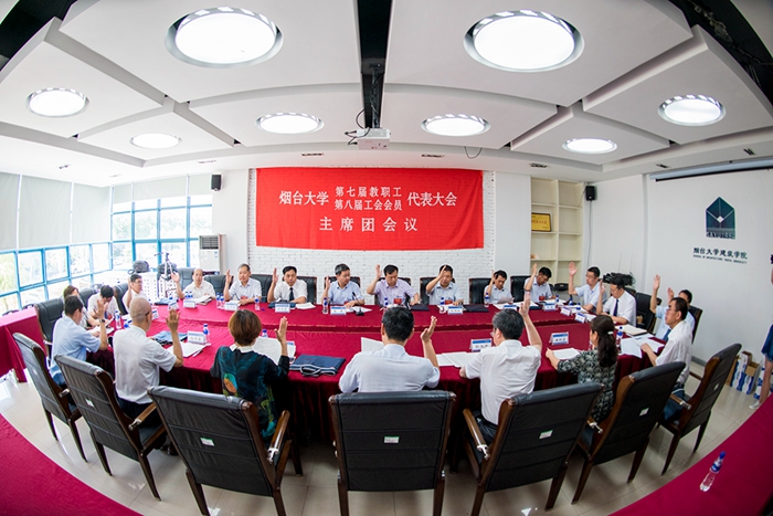 會議聽取并審議了校長郭善利代表學校所作的工作報告、校工會主席何世新所作的工會工作報告、財務處處長楊眾暉所作的財務工作報告。會議審議并表決通過《煙臺大學績效工資實施意見(試行)》《煙臺大學教職工申訴處理辦法》《煙臺大學教職工代表大會實施辦法》。會議選舉產生煙臺大學第七屆教代會執行委員會、第八屆工會委員會及工會經費審查委員會。
