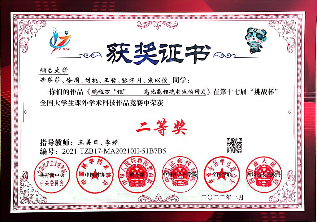 學院學生獲第十七屆“挑戰杯”全國大學生課外學術科技作品競賽二等獎