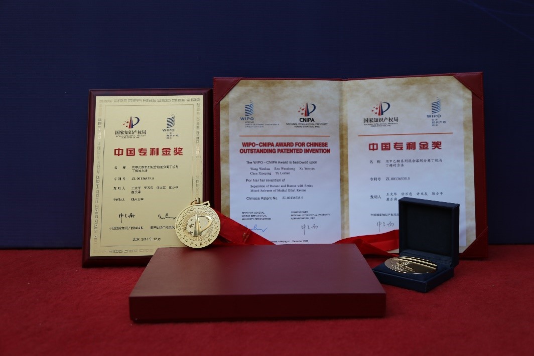 “用甲乙酮系列混合溶劑分離丁烷與丁烯的方法”榮獲中國專利金獎