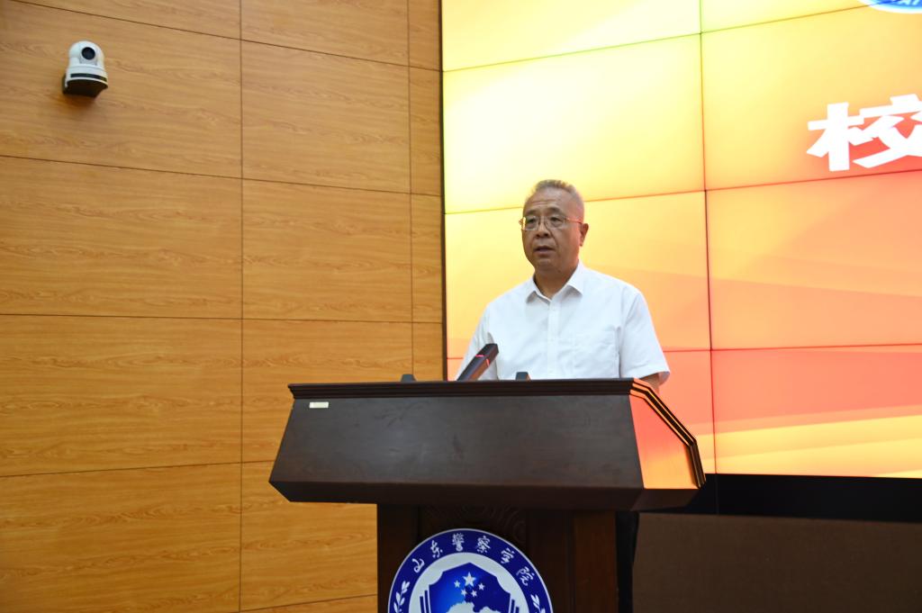 劉福宏對段培永一行的到訪表示熱烈歡迎,并簡要介紹了山東警察學院的歷史沿革、優勢學科專業以及學校特色等情況。他指出,兩校地緣相近,都形成了比較鮮明的辦學特色,多年來雙方在黨建合作、人才培養、人事制度改革、干部掛職等諸多領域都有著很多的交流與合作,結下了深厚的友誼。劉福宏表示,雖然雙方辦學方向各不相同,但在辦學理念、發展思路上有著許多共同之處,期待今后進一步加強交流合作,互通有無,互學互鑒,在科研合作與技術服務、人才培養與培訓、共建平臺與交流以及項目研究等方面加強務實合作,共同提升兩校辦學水平。