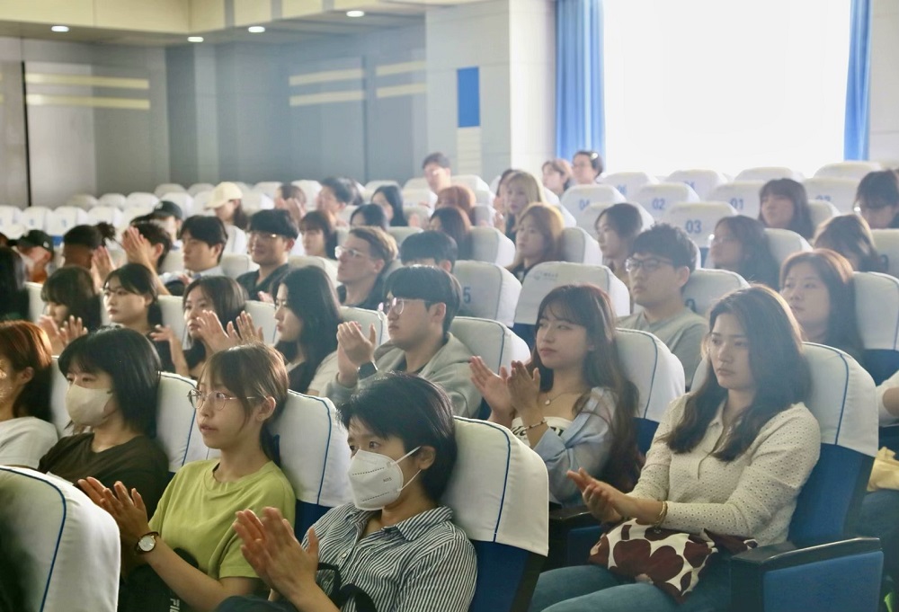 來自韓國的本科在校生代表尹智恩同學在發言中希望大家都能在中國交到好朋友,開啟人生新階段,在“守信 求實 好學 力行”校訓的引領下為學校的燦爛明天譜寫新的篇章。