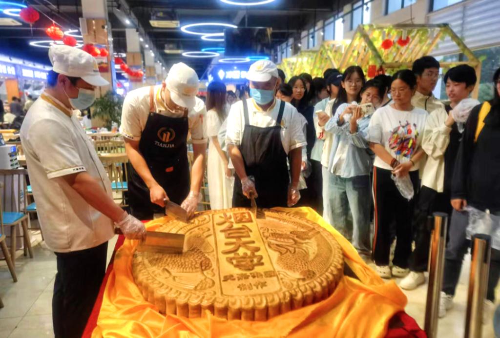 【本站訊】中秋的金風玉露一相逢,勝卻人間的除了煙園里漸黃的柳葉、澄澈的湖面、清朗的天空,還有學校的暖心“投喂”與學子的歡喜“豐收”。直徑1米的“煙大”號月餅氣勢登場、長達5米的蛋糕賺足眼球、五千余份月餅發到手軟,儀式感滿滿的特色簽名墻、熱烈度十足的現場小活動,情真意切的節日祝福語... ...