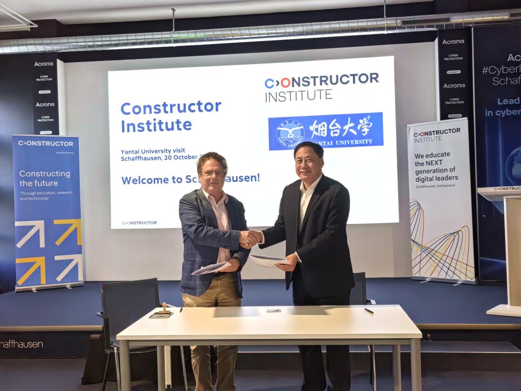 在德國康斯特大學(xué)瑞士分校(研究所),張殿臣與該校負(fù)責(zé)人伯納德·米爾分別介紹學(xué)校開展國際合作情況,并代表兩校簽署校際合作備忘錄,決定盡快啟動(dòng)學(xué)生研修項(xiàng)目,積極探索在教師學(xué)術(shù)交流、博士生和博士后培養(yǎng)、教師進(jìn)修等領(lǐng)域的合作。