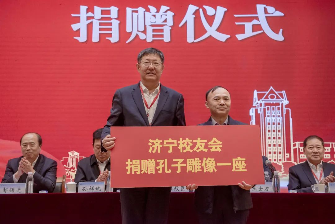 捐贈儀式中,北京校友會、深圳校友會捐贈100萬元,臨沂校友會捐贈10萬元,建筑學院2007級校友朱柯蒙和母親共同捐贈10萬元,濟寧校友會捐贈孔子雕像一座,部分校友設立獎助學金、參加“綠色煙園”樹木認養活動。學校領導代表學校依次接受校友捐贈,北京校友會常務副會長董一鳴、深圳校友會副會長梁立偉、臨沂校友會會長楊中鋒、建筑學院2007級校友朱柯蒙的母親孔英姿、濟寧校友會負責人李貴維,校友代表姜華、王偉、隋陽旸、孫偉、董錕、龐磊、徐康、張海濤、邢雷、韋如雷、張建偉、盧佳琦等到主席臺接受捐贈證書。