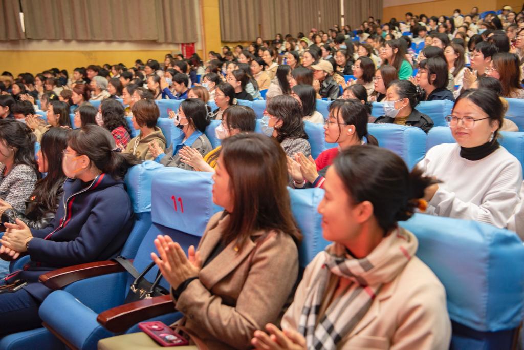中國婦女第十三次全國代表大會代表、山東省人大代表、全國三八紅旗手、中國釀酒大師、中國白蘭地首席大師、煙臺市婦聯兼職副主席、煙臺張裕葡萄釀酒股份有限公司副總釀酒師、可雅白蘭地酒莊有限公司總經理張葆春分享了自己參加中國婦女十三大的經歷和感受,回顧了在煙臺大學讀書的青春歲月,寄語師生要將個人理想追求融入黨和國家事業之中,在科技創新之路上勇攀高峰;中國婦女第十三次全國代表大會代表、山東省優秀共產黨員、煙臺最美巾幗奮斗者、長島綜合試驗區砣磯中心衛生院副主任護師劉小彩結合親身經歷,講述了從自己從荊楚大地到邊陲海島奉獻青春的感人故事;煙臺大學土木工程學院副院長張勁分享了自身學習《習近平走進百姓家》的感悟,講述了她致力于打造黃河生態團隊,扎根黃河流域生態保護的事跡;濟南大學教授趙薇立足中華優秀傳統文化,就《易經》中的治家之道進行講述;煙臺大學巾幗理論宣講志愿服務隊、馬克思主義學院師生代表圍繞習近平總書記關于婦女兒童和婦聯工作的重要論述,為師生們帶來鏗鏘有力的宣講。
