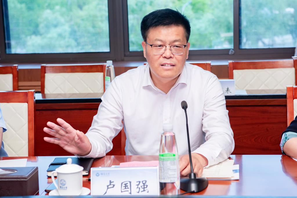 會上,盧國強對張宇飛一行表示熱烈歡迎,并簡要介紹了學校的基本情況和發展特色。他表示,學校始終以服務國家重大戰略和區域經濟社會發展為己任,堅持“立足煙臺、服務山東、輻射全國”的發展理念,持續提升服務地方成效與能力,通過科技服務地方、專業對接地方、智庫引領地方、人才支撐地方,開展了“百名博士服務地方”“合作發展縣域行”等一系列品牌活動,在不斷深化校地融合、產教融合辦學特色中推進高質量發展。盧國強指出,校地融合發展是當前經濟社會高質量發展面臨的重要課題,也是加快推進高等教育現代化建設的重要任務,創新校地合作、推動產教融合,對地方、企業、高校的發展都具有相當重要的意義。此次與泗水縣人民政府開展校地合作,是順應新時代高等教育發展的新使命新要求,也是雙方務實合作邁入全方位、多維度、深層次的開端,必將開創校地優勢互補、資源共享、發展共贏的新局面。學校將以此為契機,充分整合人才、科技、教育等方面的優勢資源,通過校地合作給地方注入創新發展的動力,全力打造校地合作新典范,助推泗水縣經濟社會發展邁上新臺階。