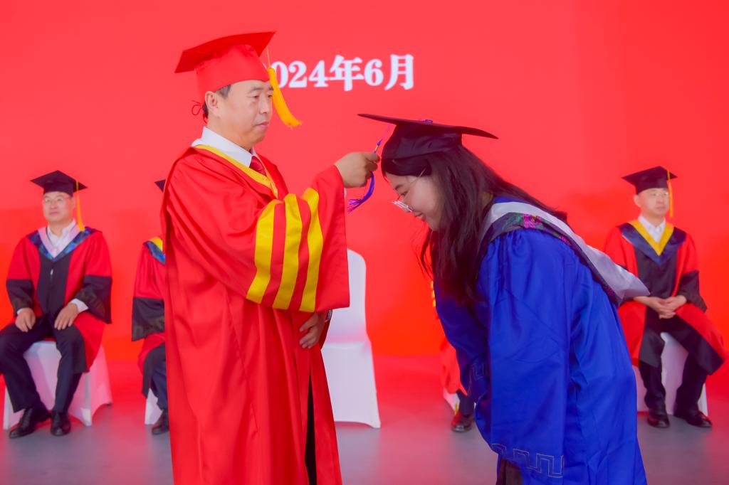 校長、校學位評定委員會主席郝曙光為碩士研究生撥穗正冠