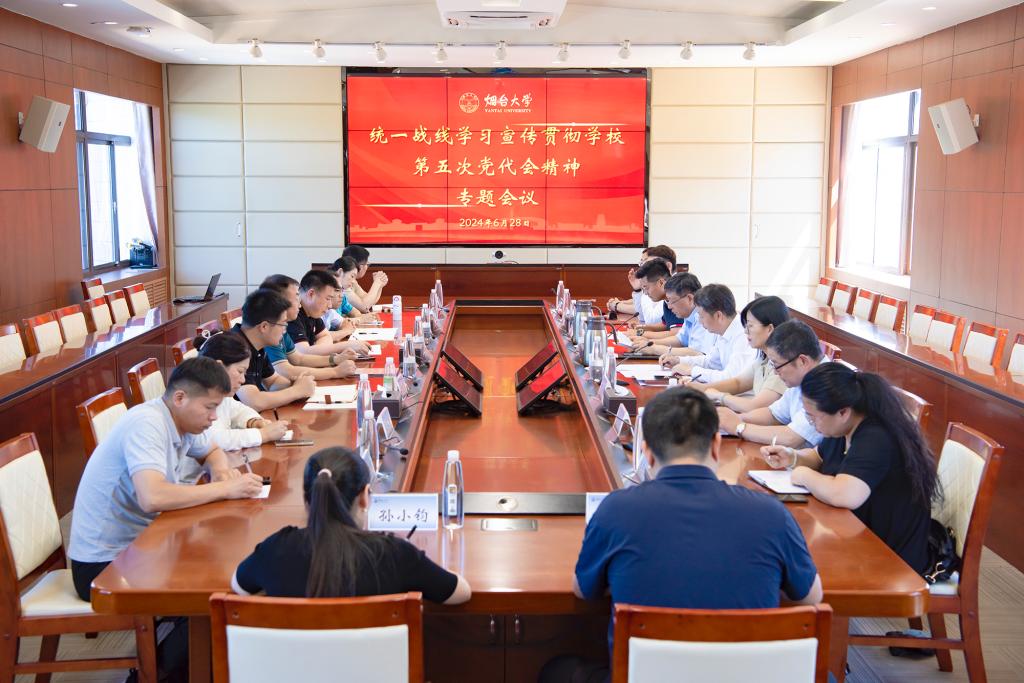 【本站訊】6月28日,學(xué)校統(tǒng)一戰(zhàn)線學(xué)習(xí)宣傳貫徹?zé)熍_(tái)大學(xué)第五次黨代會(huì)精神專題會(huì)議在育秀大樓316會(huì)議室舉行,對(duì)學(xué)校統(tǒng)一戰(zhàn)線學(xué)習(xí)宣傳貫徹學(xué)校第五次黨代會(huì)精神進(jìn)行安排部署。黨委副書(shū)記王強(qiáng)出席會(huì)議并講話,學(xué)校各民主黨派和統(tǒng)戰(zhàn)團(tuán)體負(fù)責(zé)人、無(wú)黨派代表人士參加,會(huì)議由黨委常委、統(tǒng)戰(zhàn)部部長(zhǎng)畢朝輝主持。