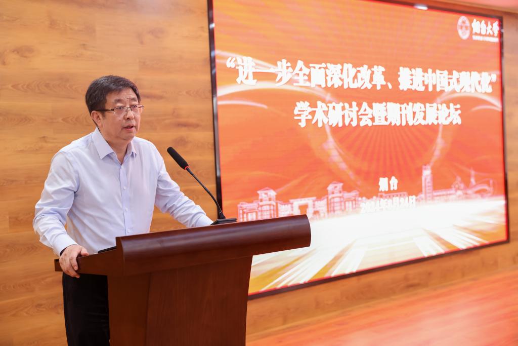 【本站訊】8月24日,“進(jìn)一步全面深化改革、推進(jìn)中國式現(xiàn)代化”學(xué)術(shù)研討會(huì)暨期刊發(fā)展論壇在煙臺大學(xué)召開,來自中國社會(huì)科學(xué)院、中央財(cái)經(jīng)大學(xué)等高校、科研機(jī)構(gòu)的專家學(xué)者以及國內(nèi)部分期刊主編參加論壇。黨委副書記、校長郝曙光出席論壇開幕式并致辭,黨委常委、副校長馮素玲主持開幕式。