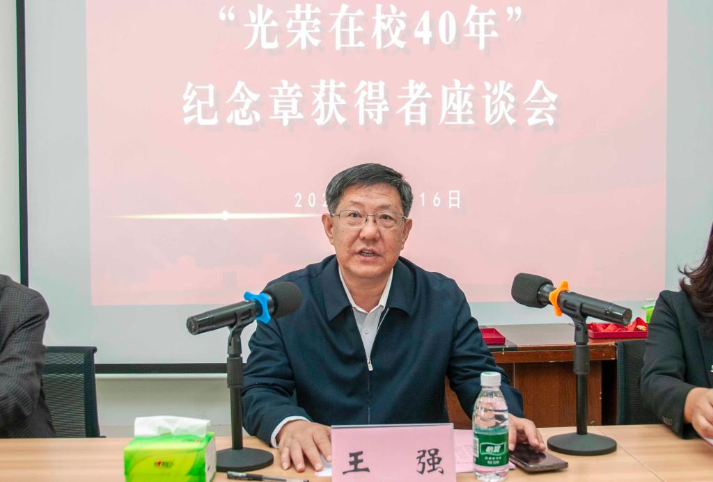 王強為老同志代表逐一佩戴“光榮在校40年”紀念章并頒發紀念品,代表學校黨委向55位自建校伊始,一直扎根煙臺大學從事教育管理服務工作的老一輩工作者表示崇高的敬意和衷心的感謝,并介紹學校近期工作開展情況。他表示,學校的發展成績離不開離退休老同志在職期間和退休后的付出和貢獻。希望大家在以建校40周年為新起點的新征程上,繼續發光發熱,老有所為,為加快建設高水平大學團結奮斗、奮楫篤行,為教育強國和中國式現代化建設貢獻“銀發力量”。學校將認真學習貫徹習近平總書記給“銀齡行動”老年志愿者代表回信的重要指示精神,聚焦老年人的急難愁盼問題,進一步完善舉措、精準服務,把老年人生活保障好、作用發揮好、權益維護好。