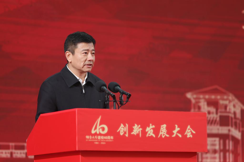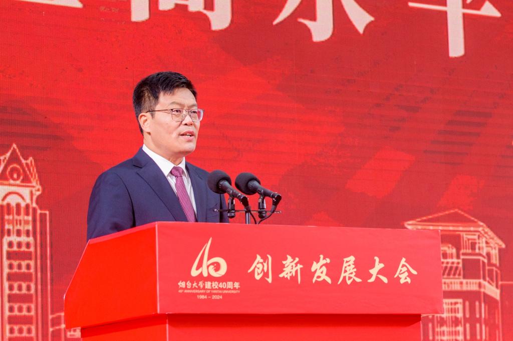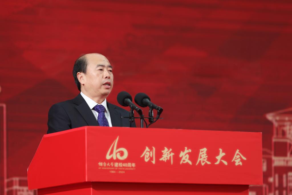 煙臺大學黨委副書記、校長郝曙光作題為“勇擔時代使命 續寫四秩華章”的發展報告