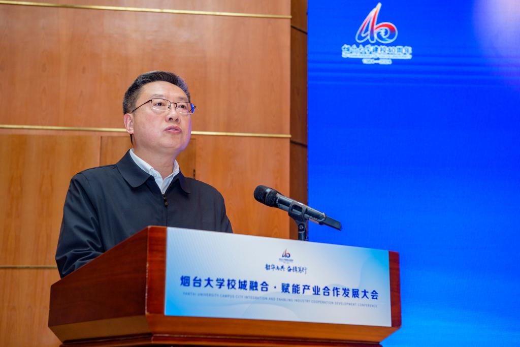 盧國強在致辭中指出,在40年的辦學實踐中,煙臺大學始終堅守服務區域經濟社會發展的初心,堅定建設高水平大學目標,聚焦國家、省市重大發展戰略,積極擦亮校城融合的底色,全力打造校企合作的特色,不斷增添賦能產業的亮色,持續彰顯服務地方的本色,立足煙臺、服務山東、輻射全國,為區域經濟社會發展做出了應有貢獻。煙臺大學以建校40周年為契機,舉辦“校城融合·賦能產業”合作發展大會,將充分發揮高層次人才、高水平平臺等辦學資源的優勢與特色,聚焦國家、省市戰略需求和區域經濟社會發展需要,創新合作途徑、合作模式,與各方攜手共進,開展全方位、多領域、深層次的合作,共同書寫校城融合、協同創新、賦能產業、合作發展的嶄新篇章。