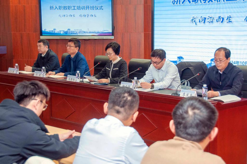 【本站訊】為進一步加強高素質教師隊伍建設,落實師德師風第一標準,持續教育引導新入職教師以教育家精神為引領、更快更好地勝任工作崗位,10月31日,學校舉行2024年度新入職教職工培訓開班儀式,啟動本年度新入職教職工培訓工作。黨委常委、副校長馮素玲出席開班儀式并講話,黨委教師工作部、黨委學生工作部(處)、教務處、人事處主要負責人,全體新入職教職工參加開班儀式。開班儀式由黨委常委、宣傳部部長、教師工作部部長楊眾暉主持。