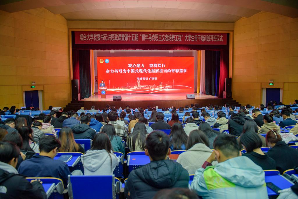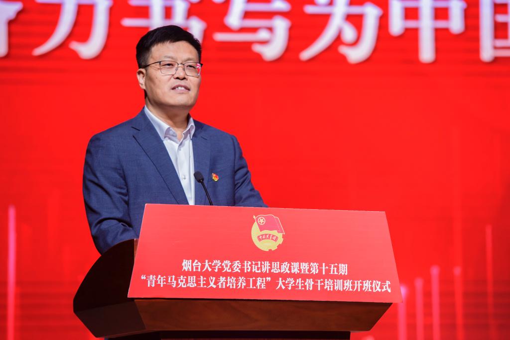 課前,第十五期“青年馬克思主義者培養(yǎng)工程”大學(xué)生骨干培訓(xùn)班舉行開班儀式。盧國(guó)強(qiáng)為煙臺(tái)大學(xué)第十五期“青馬班”授旗,黨委常委、副校長(zhǎng)姚昌,黨委常委、組織部部長(zhǎng)楊玉軍,黨委常委、宣傳部部長(zhǎng)楊眾暉出席,相關(guān)部門和學(xué)院主要負(fù)責(zé)人、全體輔導(dǎo)員、團(tuán)校及“青馬班”學(xué)員代表、學(xué)生骨干參加開班儀式。