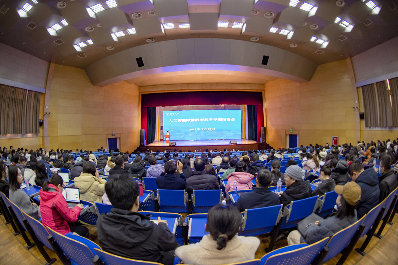 【本站訊】3月18日上午,學(xué)校舉辦人工智能賦能教育教學(xué)專題報(bào)告會(huì)。中國人工智能學(xué)會(huì)理事、浙江工業(yè)大學(xué)計(jì)算機(jī)科學(xué)與技術(shù)學(xué)院王萬良教授,超星集團(tuán)未來研究院高級(jí)研究員張杰主任分別作報(bào)告。學(xué)校領(lǐng)導(dǎo)、各相關(guān)職能部門負(fù)責(zé)人、各學(xué)院負(fù)責(zé)人和一線教師近600人參加報(bào)告會(huì)。報(bào)告會(huì)由黨委常委、副校長馮素玲主持。