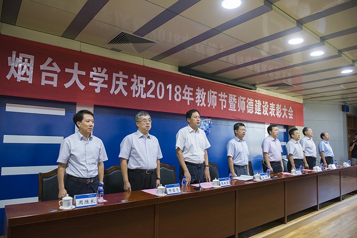 大會在雄壯的國歌聲中開幕。黨委副書記張殿臣,副校長孫祥斌、鄧昌亮、宋中民分別宣讀了《2016-2018年度煙臺大學師德建設先進集體和師德標兵名單》《煙臺大學2016-2018年度導師標兵和優秀導師名單》《煙臺大學2016-2018年度優秀輔導員名單》《山東省第五屆青年教師教學競賽我校獲獎名單》,會議對獲獎者進行了表彰。