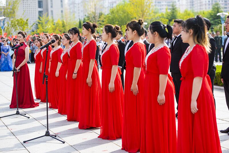 升旗儀式上,2020級新生林玉青同學以《青春奮進 筑夢家國》為題進行了國旗下的演講,一字一句傳遞著用青春奮斗書寫使命擔當的信心和力量。歌曲《中國力量》致敬家國情懷,謳歌深沉昂揚的中國力量。“一場驚心動魄的抗疫大戰,一場艱苦卓絕的歷史大考,創造了人類同疾病斗爭史上又一個英勇壯舉。”飄揚的國旗下,師生代表配樂詩朗誦《這是二〇二〇年的中國》,飽含深情地回顧了以習近平同志為核心的黨中央團結帶領全國人民進行偉大抗疫斗爭的非凡歷程,禮贊奮戰在各條戰線的抗疫英雄。“一條大河波浪寬,風吹稻花香兩岸……”活動尾聲,當這動聽而熟悉的旋律響起時,在場全體師生自發揮舞著手中的國旗,共同深情唱響《我的祖國》,用歌聲抒發著對偉大祖國最深沉和自豪的熱愛。